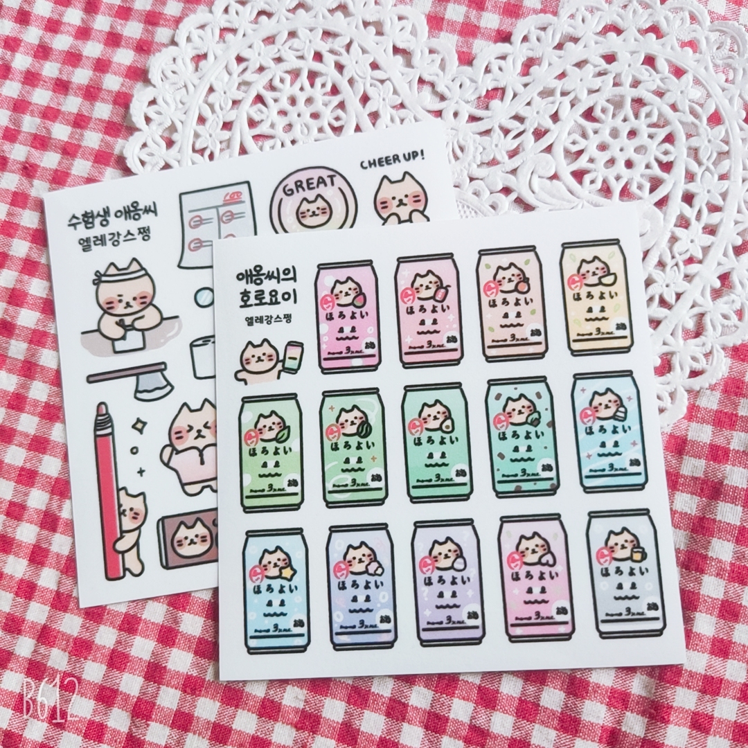 【贴纸】韩国小众作者原创可爱猫咪饮料pvc贴纸未切膜需自己裁剪