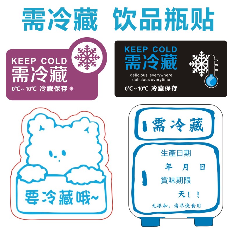 冷藏饮料饮品瓶贴 甜品贴纸 需冷藏 饮料瓶贴标签贴纸不干胶贴纸l