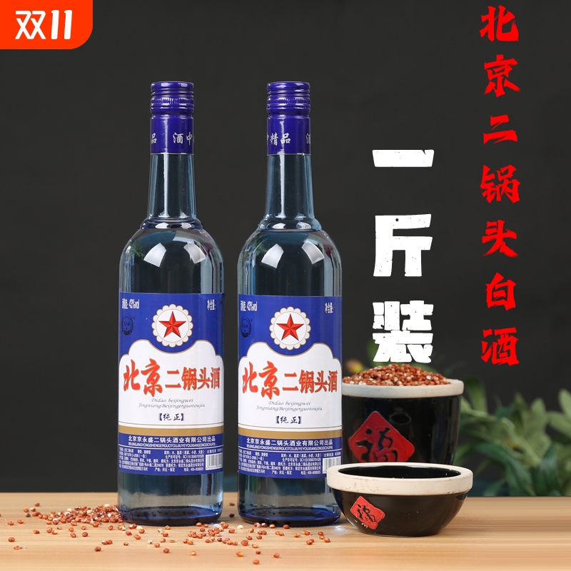 纯正北京二锅头白酒蓝圆瓶43度清香型纯粮食酒绵柔型好喝不上头