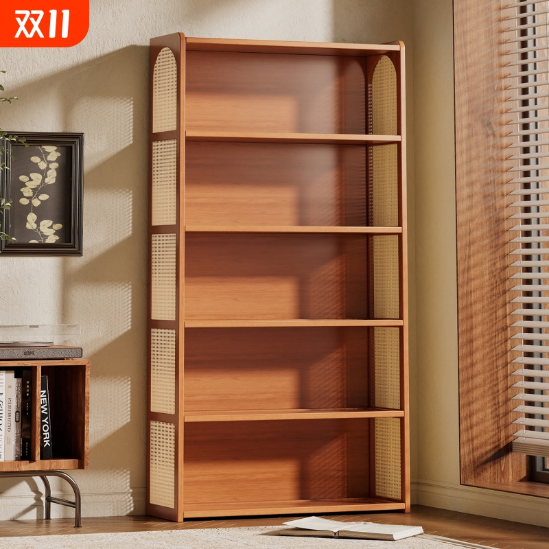 【加厚实木】书架一体落地置物架