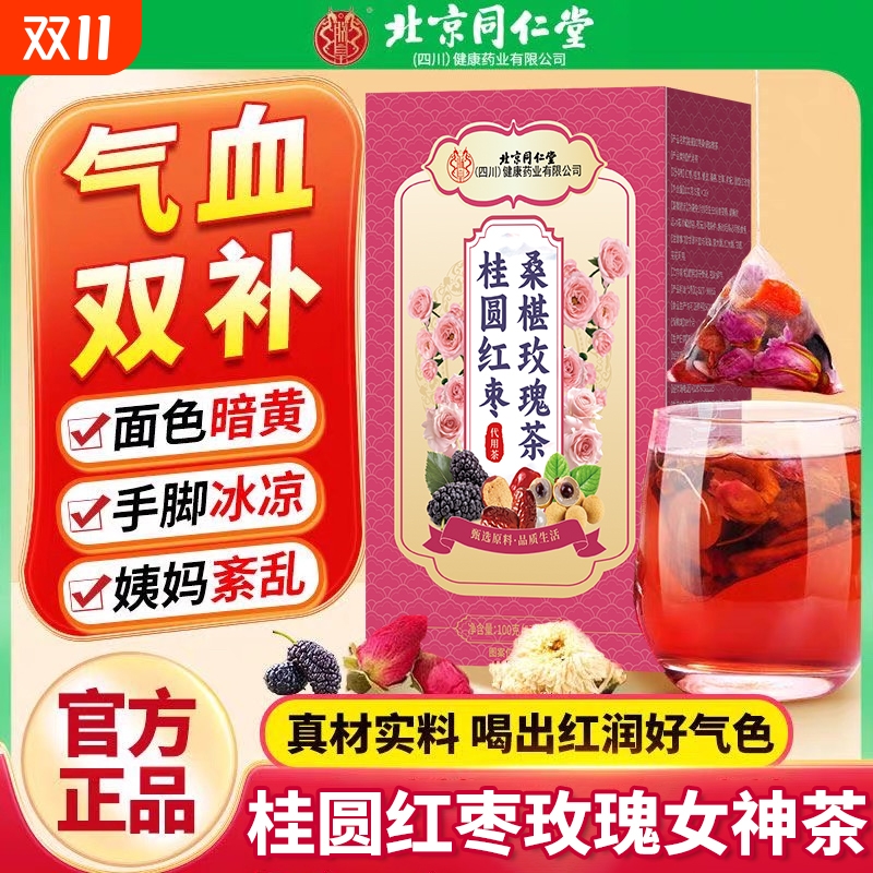北京同仁堂桂圆红枣桑葚玫瑰茶女性养生茶补气血改善面色暗黄
