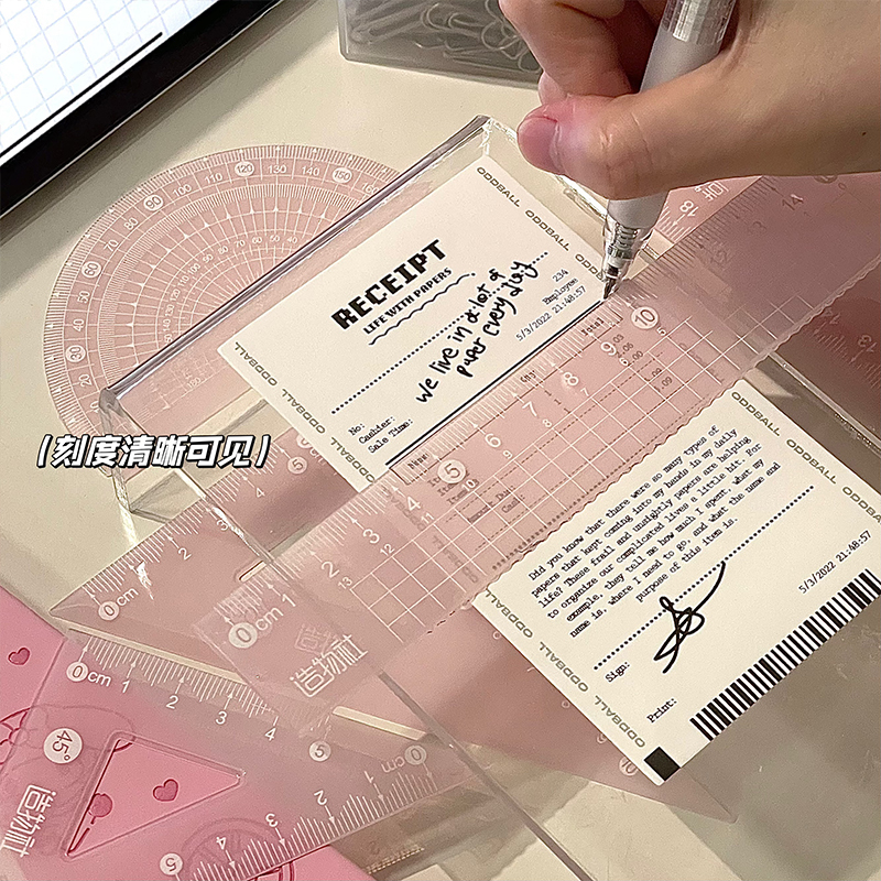 透明尺子套装ins风学生带波浪高颜值直尺三角板量角器护目文具