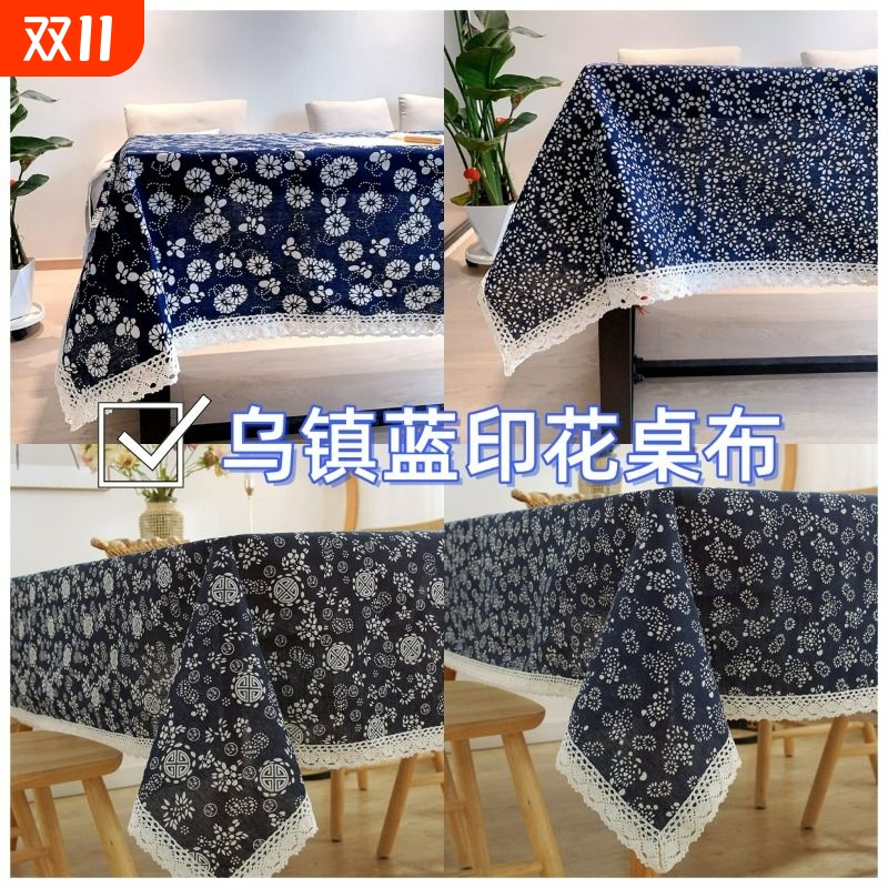 乌镇中国民族风棉麻青花布艺中式餐桌茶几台布长方形复古印花桌布