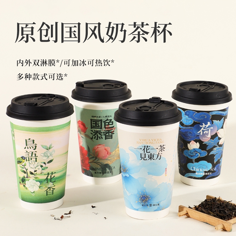 奶茶纸杯一次性双层商用加厚