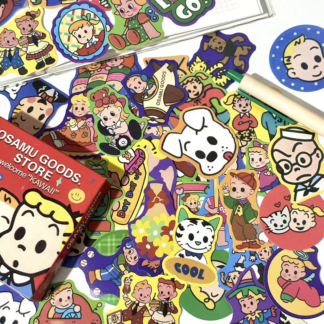 60张日系潮牌原田治贴纸ins风卡通可爱人物装饰行李箱手账小贴画