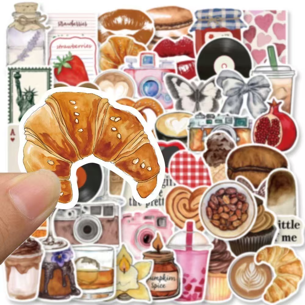 卡通ins风贴纸美食仿真写实复古装饰手账笔记本贴画100张防水贴