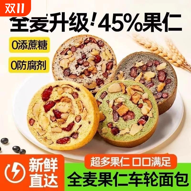 全麦面包果仁车轮饼坚果欧包减低0添蔗糖早餐大列巴脂代餐主零食