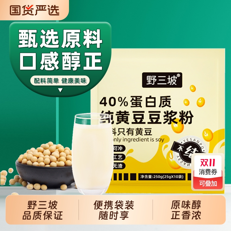野三坡纯豆浆粉豆浆黄豆高蛋白原味冲泡健身早餐孕妇食物每日