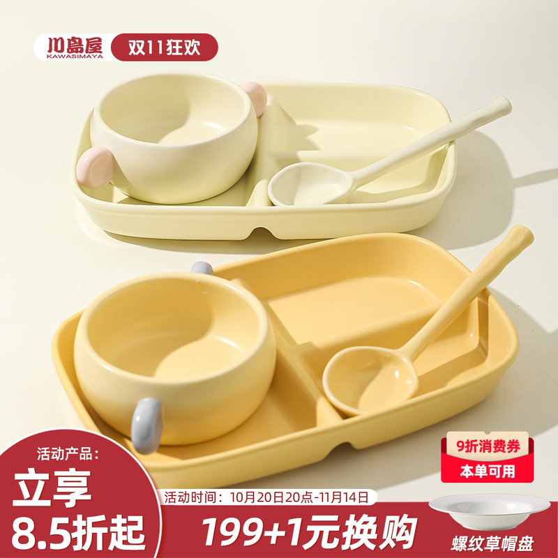 川岛屋早餐分格盘一人食餐具套装