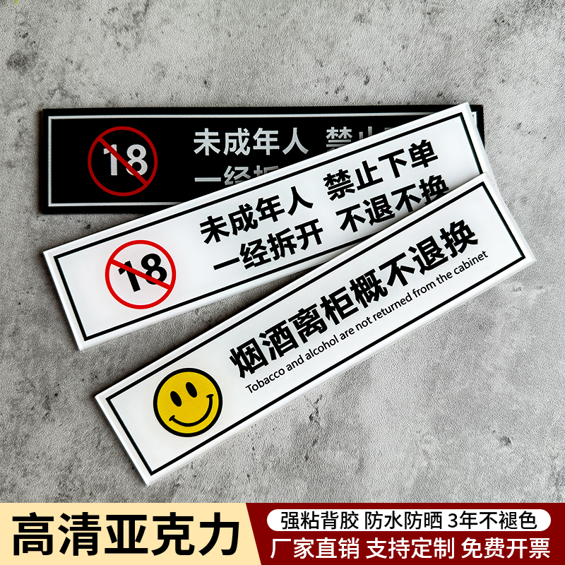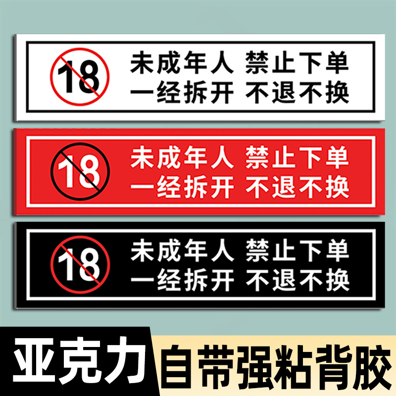 未成年人禁止下单一经拆开不退不换亚克力提示牌警示牌标牌贴牌禁止向