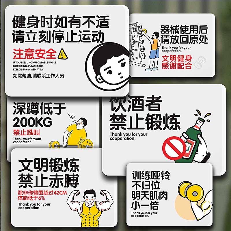 健身时如有不适请立刻停止运动警示D牌注意安全饮酒者禁止锻炼赤