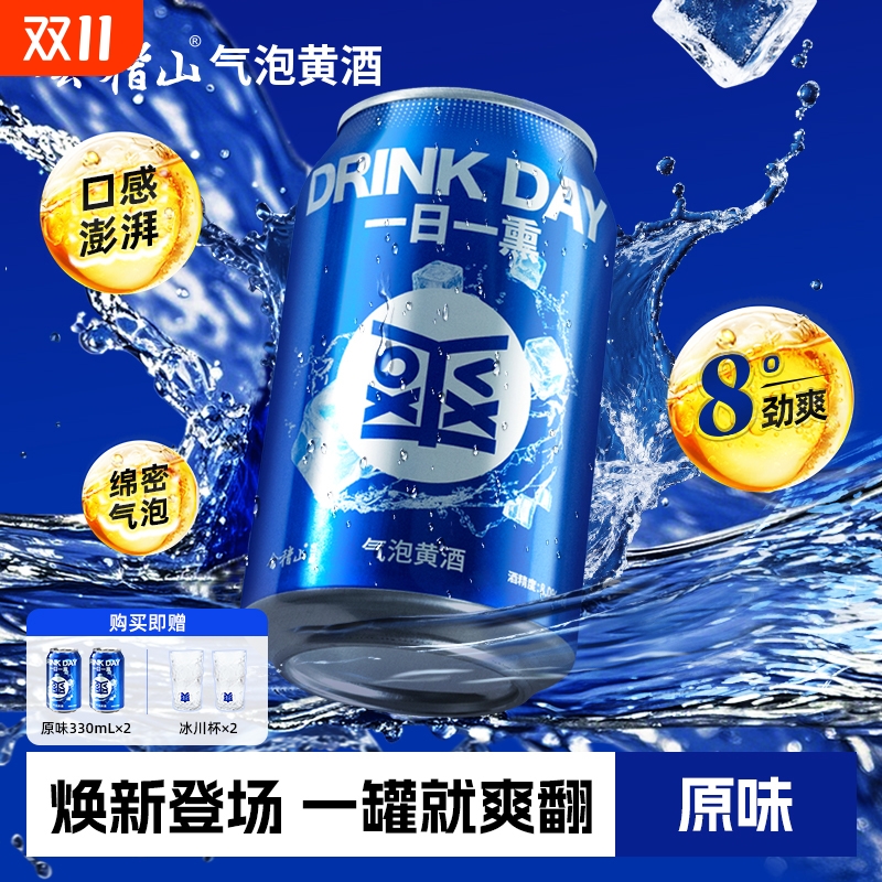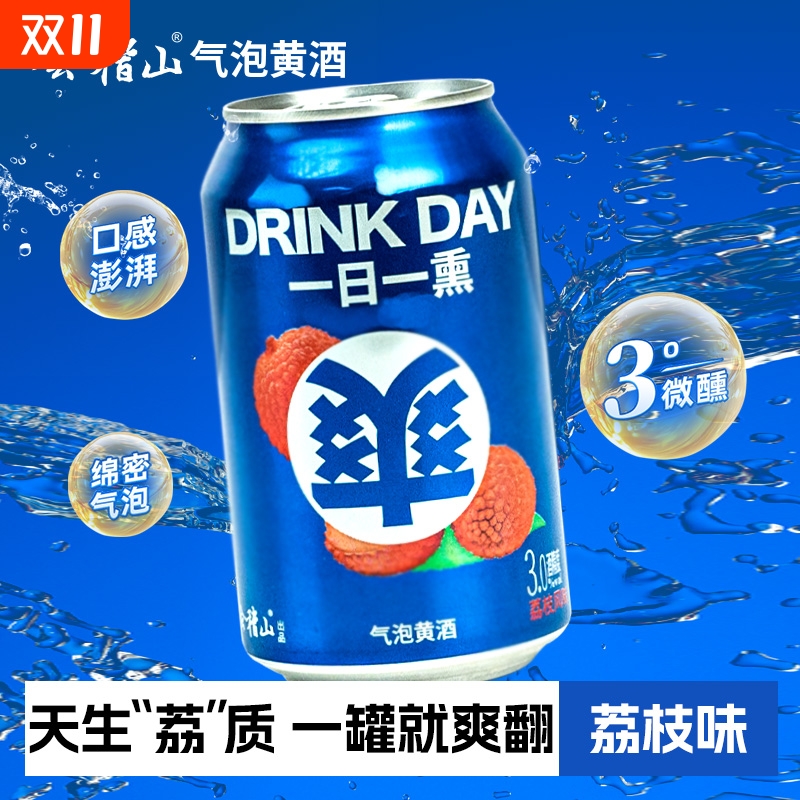 会稽山 荔枝味爽酒正宗气泡黄酒3度330ml*6胖罐装低度冰饮酒