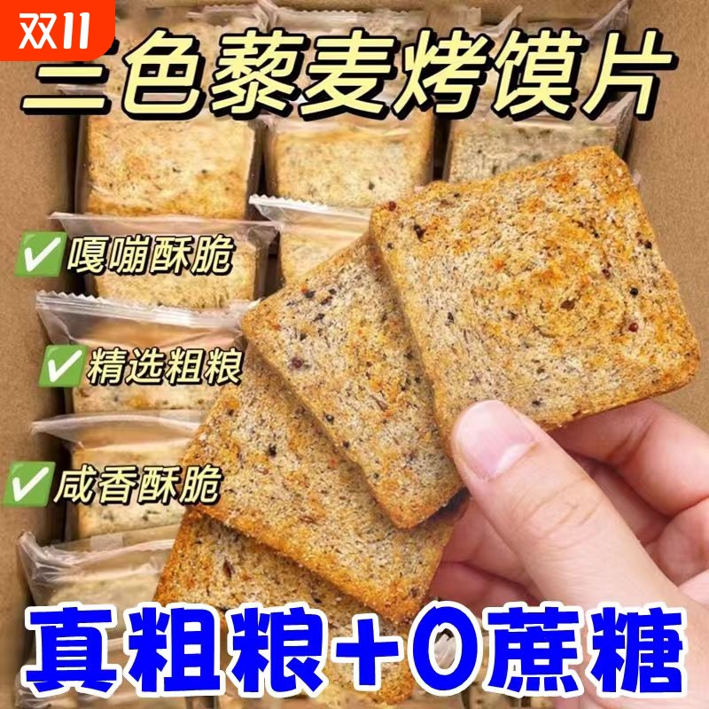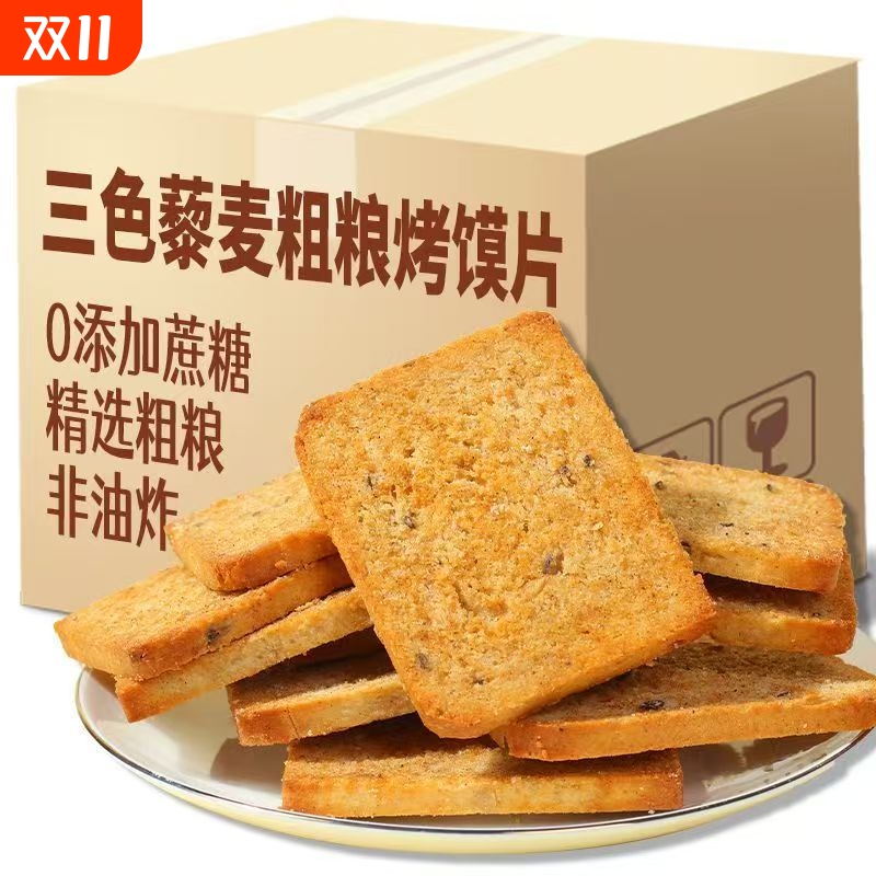 三色藜麦双色奇亚籽粗粮烤馍片全麦馒头片解馋零食整箱油炸健康