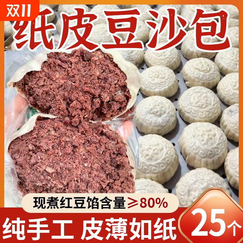 红豆包薄皮红豆馒头纸皮豆沙包馍馍饼枣泥馅包子老式手工面点早餐