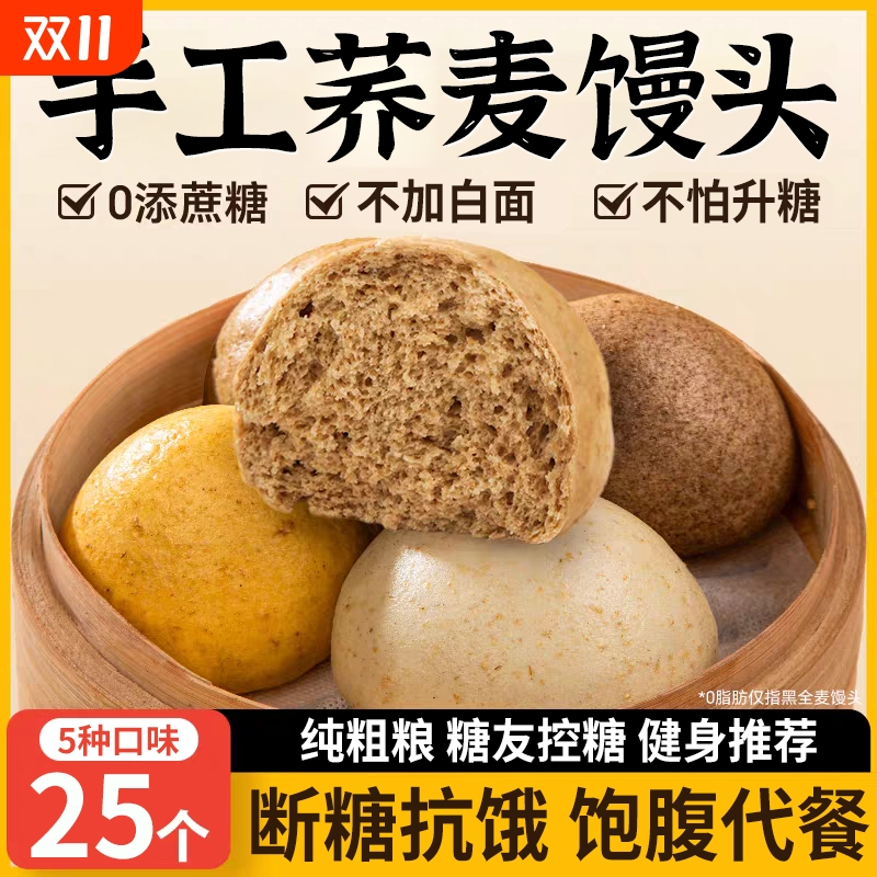 荞麦馒头手工粗粮杂粮馒头五谷杂粮包速食早餐糖友代餐