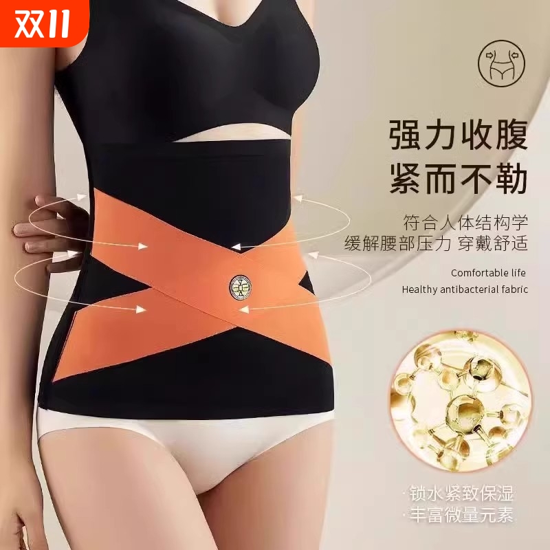 女式无痕塑身交叉收腹塑身腰带能量石钢骨收小肚子隐形薄款束腰