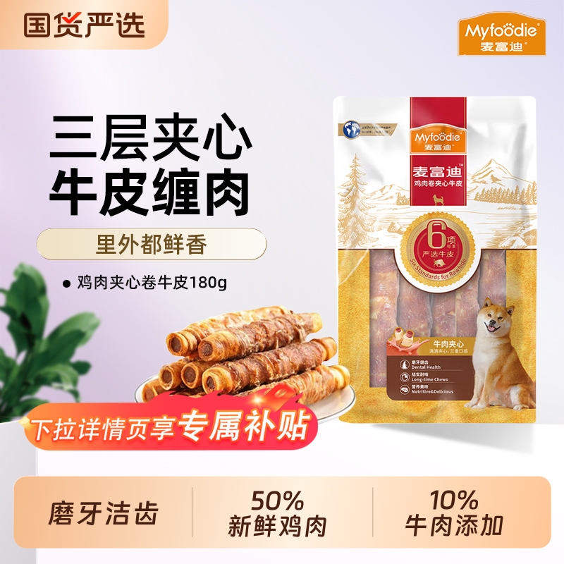 麦富迪狗狗零食牛皮磨牙棒洁齿棒小型犬泰迪幼犬夹心宠物零食骨头
