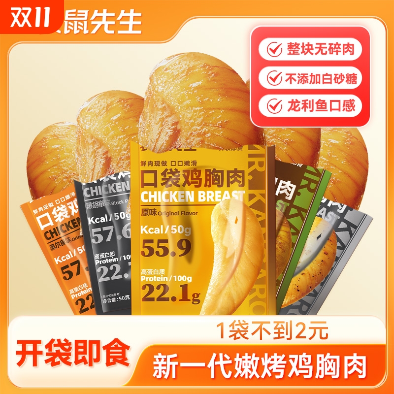 鸡胸肉袋鼠先生50g轻食饱腹高蛋白即食健身代餐速食减低脂主食