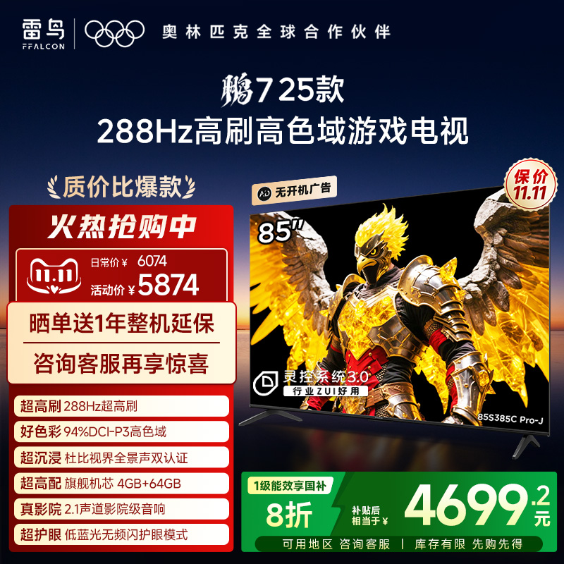 TCL雷鸟鹏7 25款85英寸288Hz高刷满血HDMI2.1电