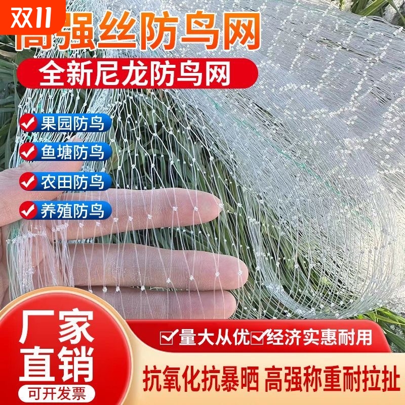 农用鱼线材质防鸟天网果树葡萄樱桃防鸟网鱼虾蟹池塘稻谷防鸟网