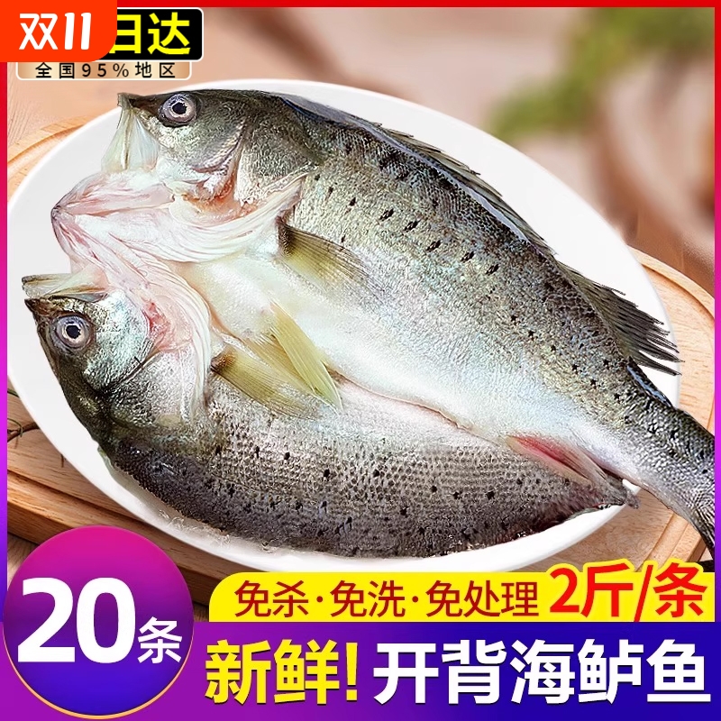海鲈鱼开背新鲜冷冻深海七星鲈鱼鲜活海卢鱼水产烤鱼半成品商用