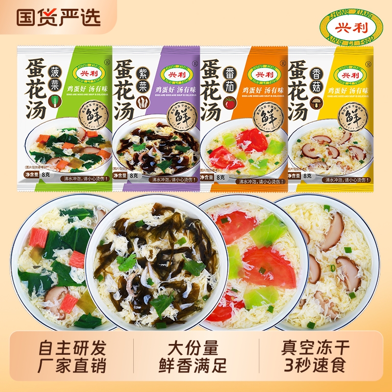 立兴速食蛋花汤8g鲜蔬芙蓉紫菜蔬菜汤冲泡即食小包汤料包营养冻干