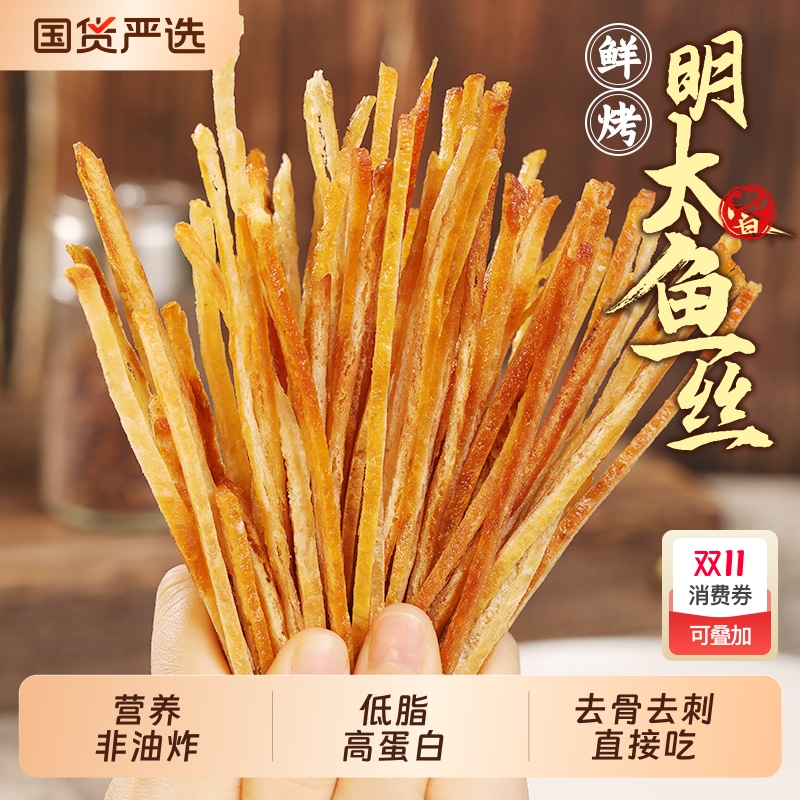 鳕鱼片干烤鱼片炭烤即食手撕鱼干