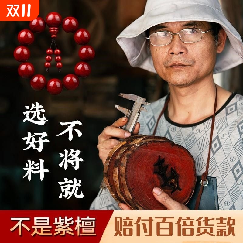 印度小叶紫檀手串泥料鸡血红满金星男女2.0佛珠手链文玩108颗念