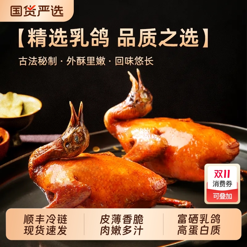 【富硒乳鸽】广东脆皮鸽子肉爆汁脆皮乳鸽半成品烤乳鸽脆皮卤鸽