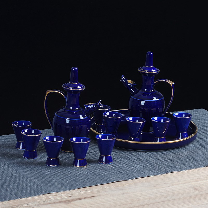 宫廷风酒杯套装家用双头白酒杯仿古分酒器黄清青瓷酒盅半斤小酒壶