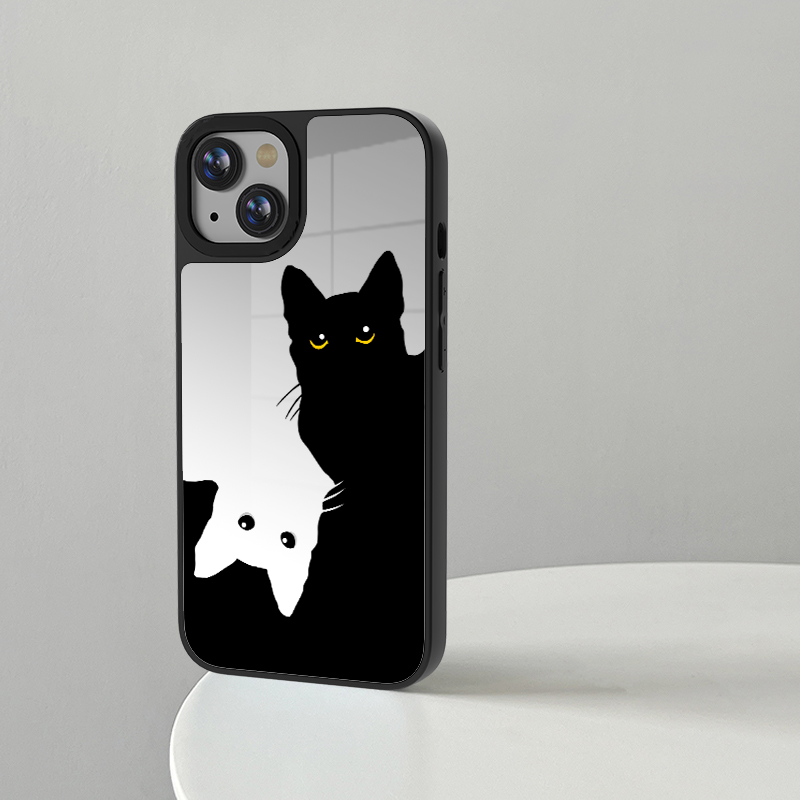 ZEHAO*ins镭射优雅黑猫白猫双层印花韩系14适用iphon